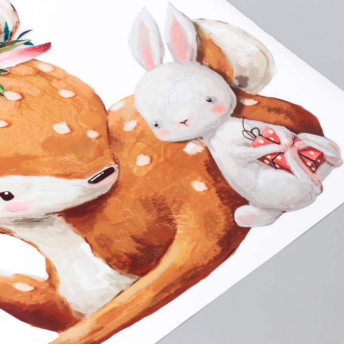 Наклейка пластик интерьерная цветная "Оленёнок с зайчиком" 39х44 см