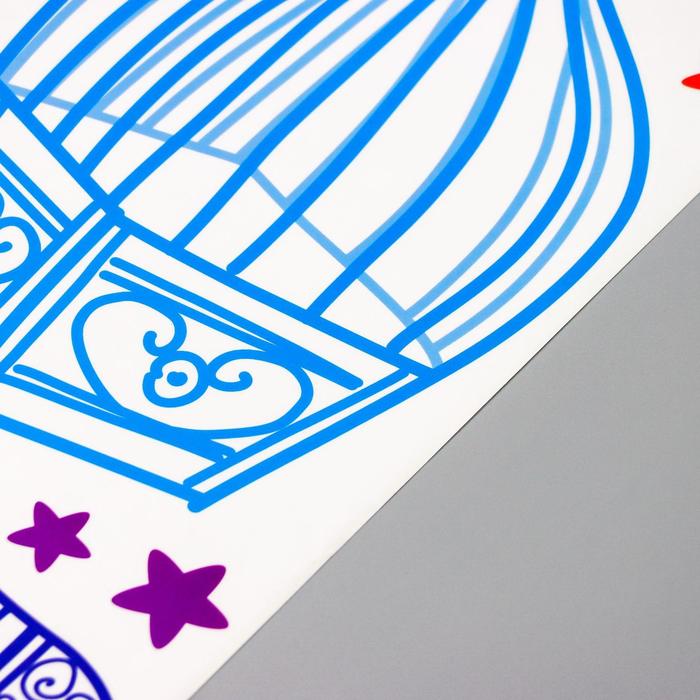 Наклейка пластик интерьерная цветная "Птенчики и клетки" 50х70 см