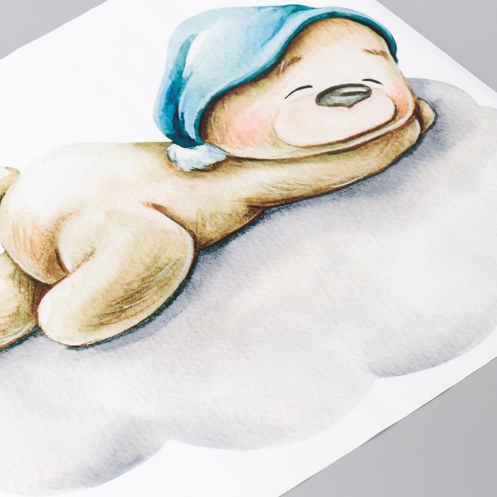 Наклейка пластик интерьерная цветная "Спящий мишка в колпаке, на облаке" 35х60 см