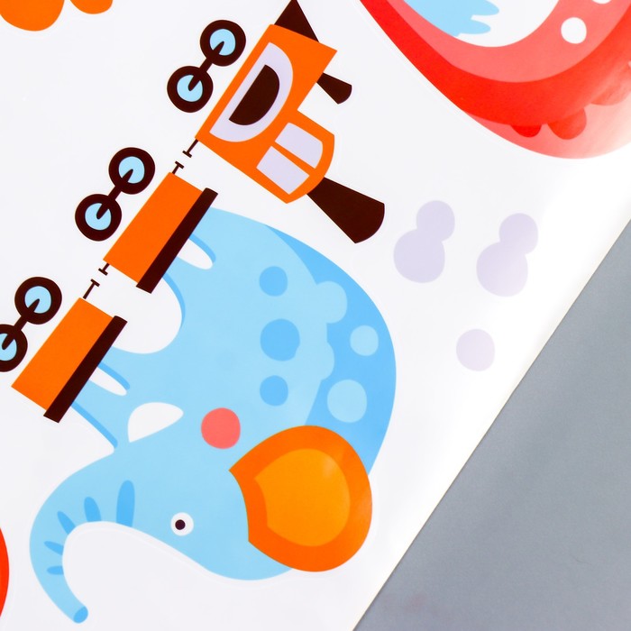 Наклейка пластик интерьерная цветная "Зверушки и транспорт" 60х90 см