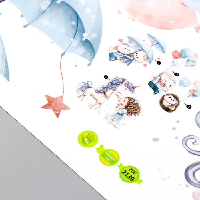 Наклейка пластик интерьерная цветная "Зверята с шариками, зонтиками" 30х90 см набор 2 листа