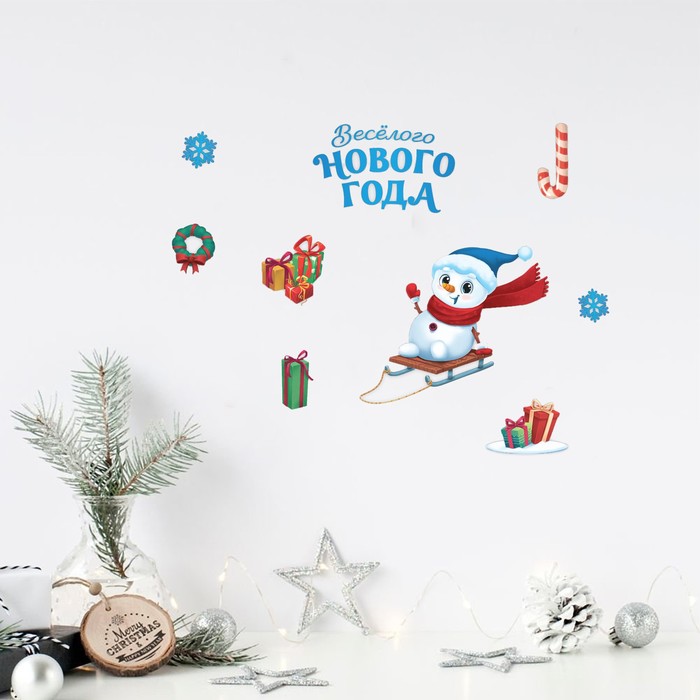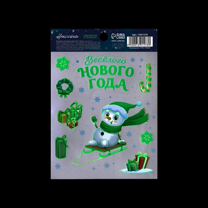 Наклейка со светящимся слоем «Снеговичок», 10.5 х 14.8 см