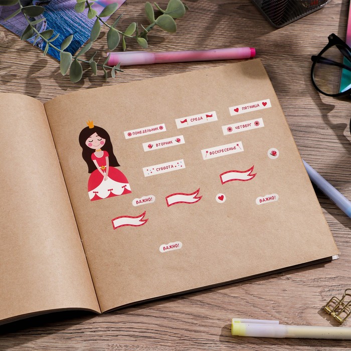 Наклейки бумажные для ежедневника «Принцесса», 4×23 см