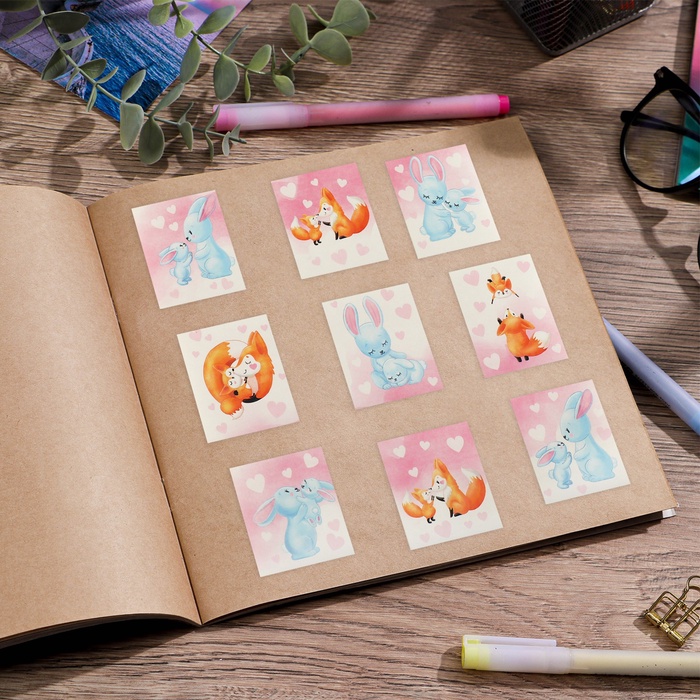 Наклейки детские бумажные «Лисички и зайчики», c раскраской на обороте, 11×15.5 см