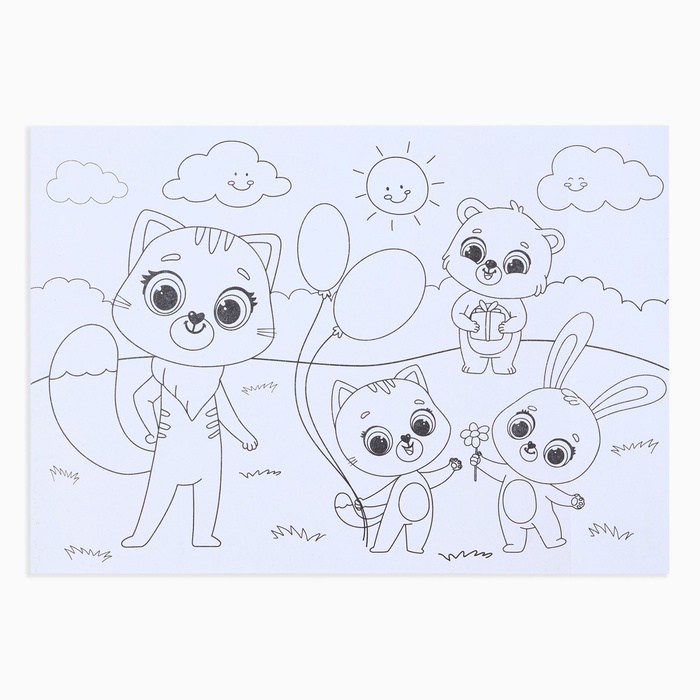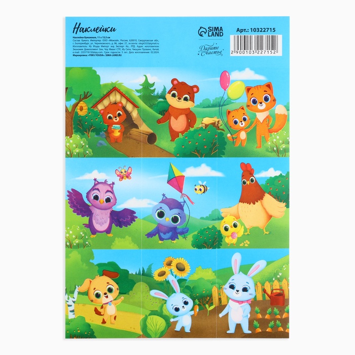 Наклейки детские бумажные «Милые животные», c раскраской на обороте, 11 х 15.5 см