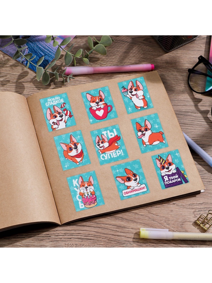 Наклейки детские бумажные «Пёсик корги» , 11 х 15.5 см