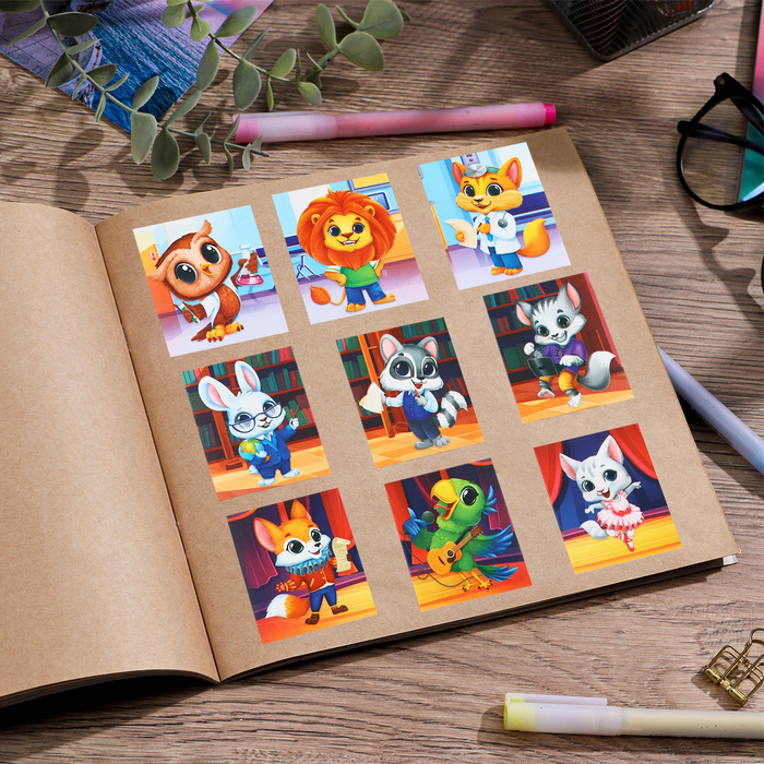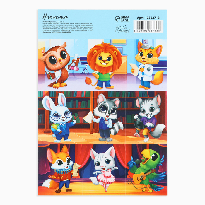Наклейки детские бумажные «Умные животные», c раскраской на обороте, 11 х 15.5 см