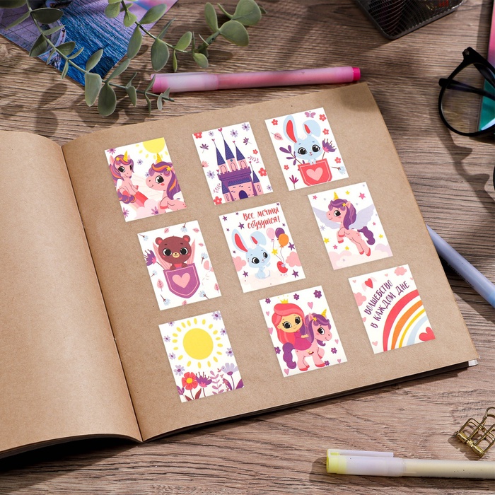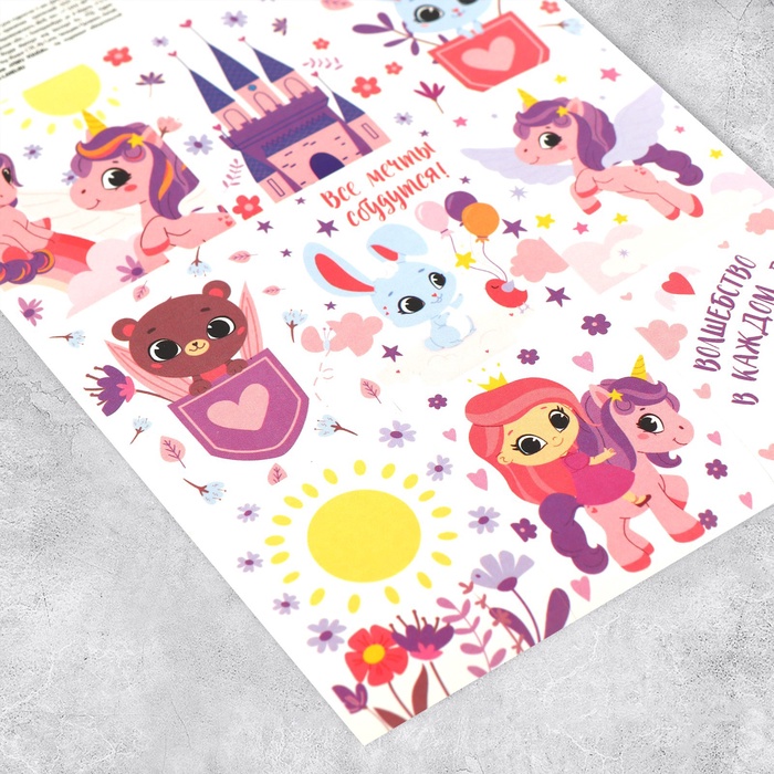 Наклейки детские бумажные «Волшебный мир», c раскраской на обороте, 11 х 15.5 см