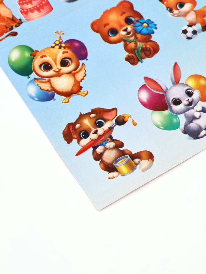 Наклейки детские «Милые животные», c раскраской на обороте, 10 х 14 см