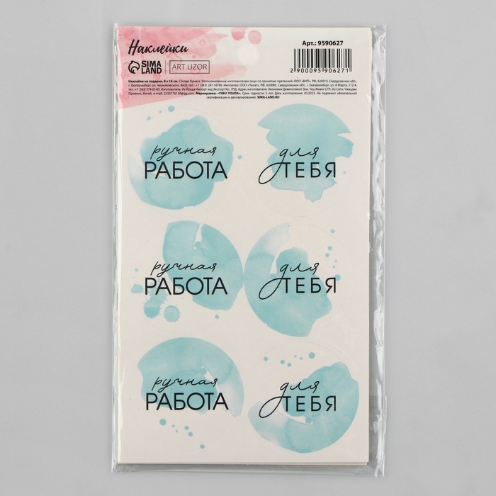 Наклейки для бизнеса и подарков «Ручная работа в голубом», 9 х 16 см