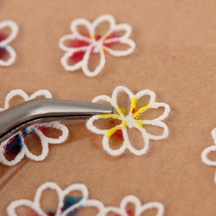 - С помощью пинцета снимите его с плёнки и приклейте к ногтю, аккуратно прижимая.