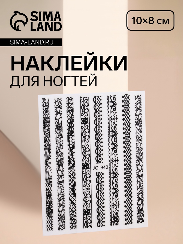 Наклейки для ногтей «Кружевная композиция», чёрные