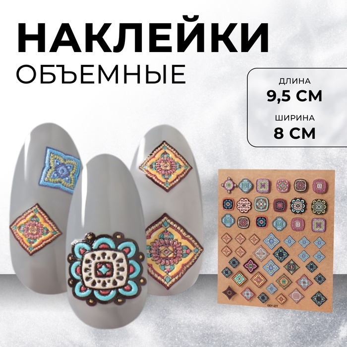 Уникальный дизайн объемных наклеек позволит создать неповторимый образ всего за несколько минут. Они легко наносятся и надежно держатся на поверхности. Будьте уверены, что ваши ногти будут выглядеть эффектно в любой ситуации. Идеально подходят как для повседневной носки, так и для особых случаев.
