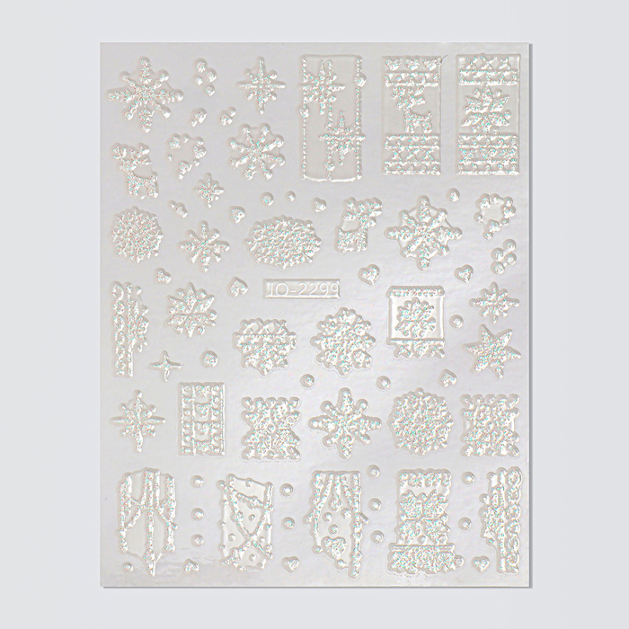 Наклейки для ногтей «Снежинки», объёмные, с блёстками, белые