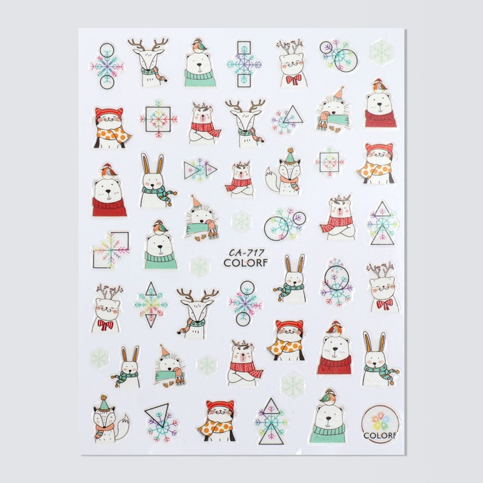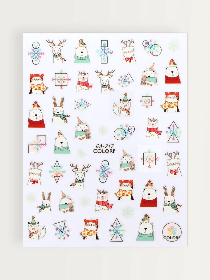 Каждая наклейка выполнена из высококачественной бумаги и пластика, что обеспечивает отличную стойкость и яркость изображений. Тематика наклеек охватывает не только новогодние и рождественские мотивы, но и милых животных, которые привнесут в ваш маникюр атмосферу праздника и тепла.