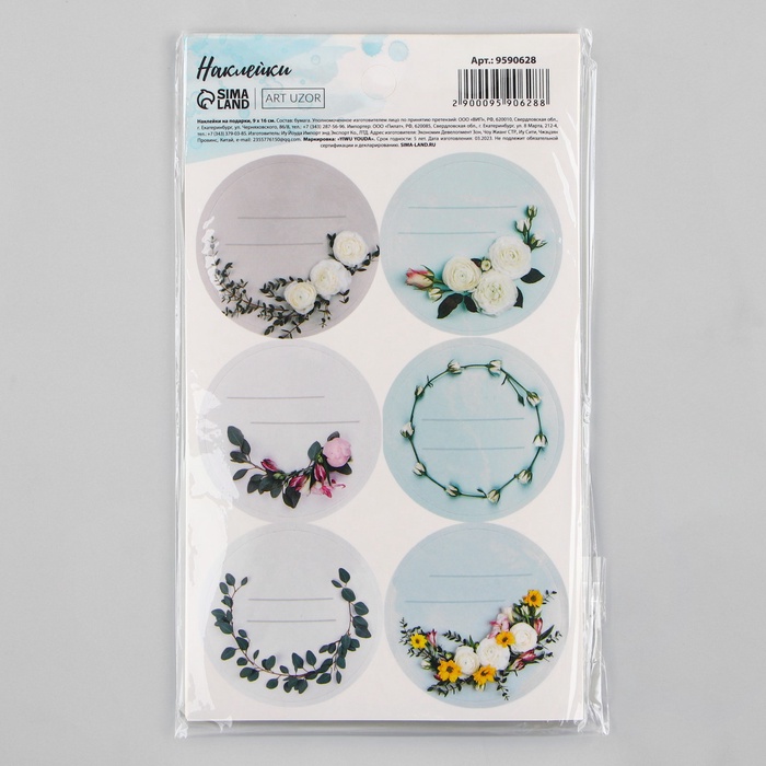 Наклейки для подарков и цветов «Цветочная рамка», 9 х 16 см