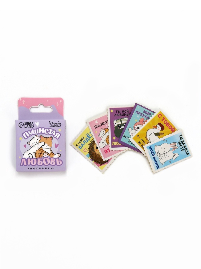 Наклейки для подарков «Пушистая любовь», 42 штуки в коробке. 3 х 4 см