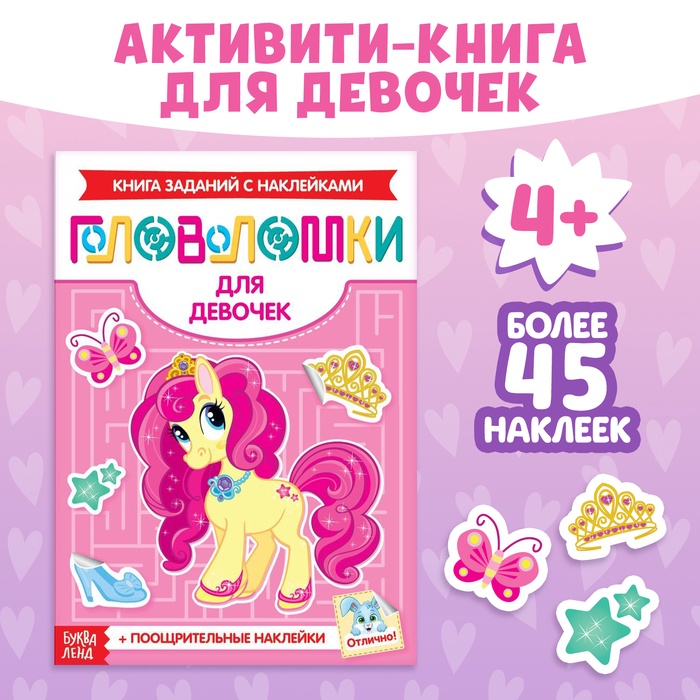 Наклейки «Головоломки. Для девочек» — это развивающая книжка, созданная специально для детей от 4 лет. Издание включает 12 страниц с интересными заданиями на внимание и логику, а также множество ярких наклеек.