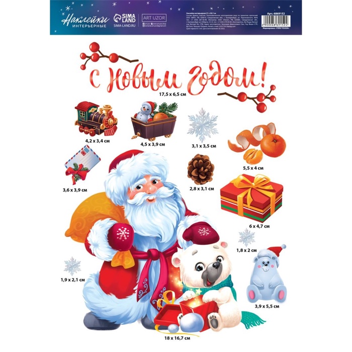 Наклейки интерьерные новогодние «Дедушка Мороз», 21 х 29.5 см