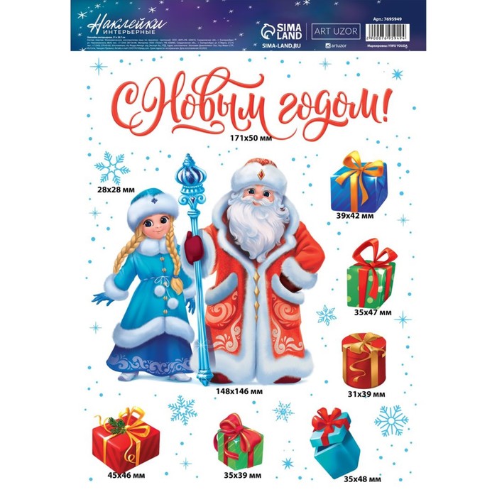 Наклейки интерьерные новогодние «С Новым годом», 21 х 29.5 см