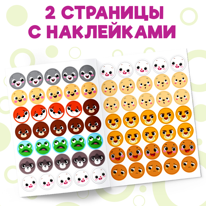 - 70 наклеек-кружочков, которые нужно подбирать под подходящую ситуацию.