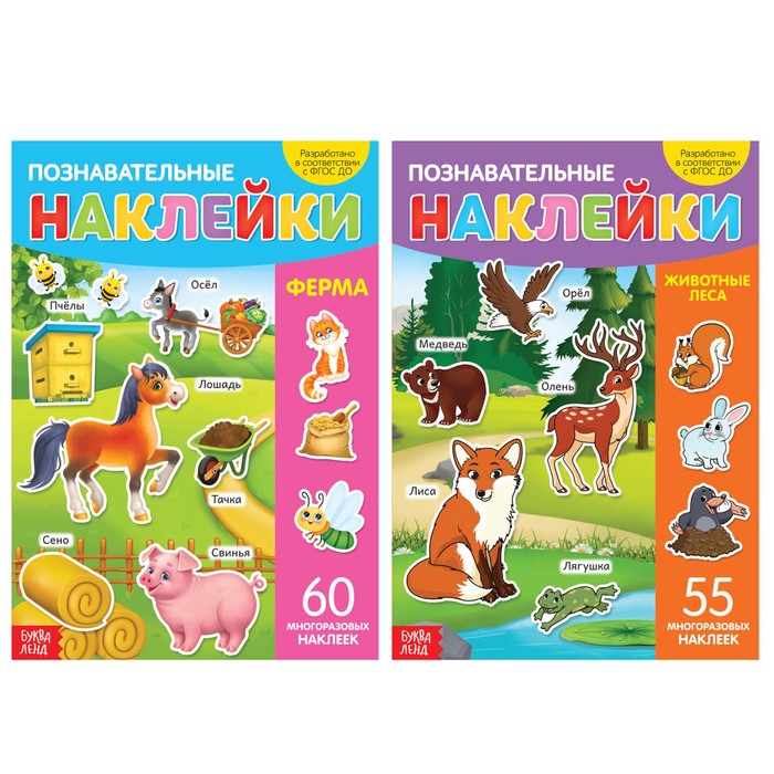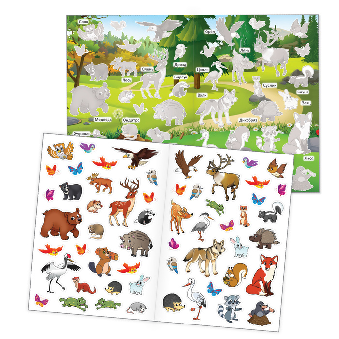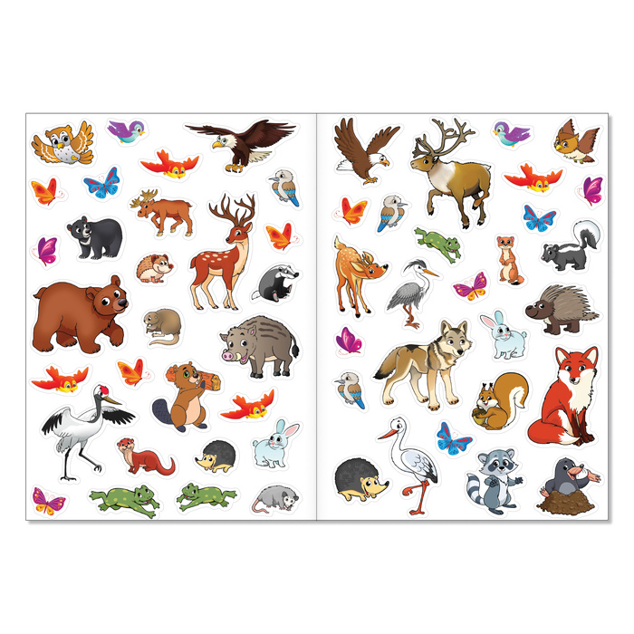 Набор книг заинтересует всех любителей животных. Ведь в них много наклеек с обитателями леса, фермы и не только!