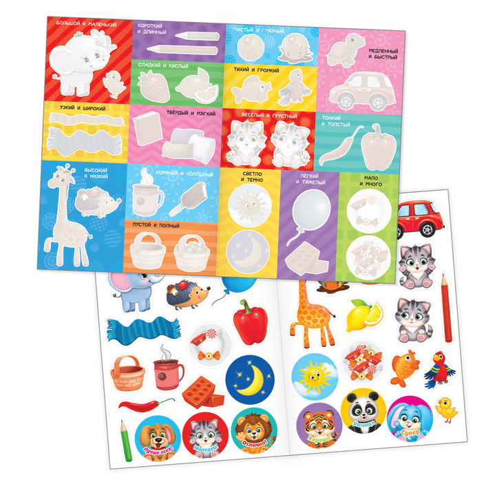 С многоразовыми наклейками ребёнок сможет изучить буквы алфавита, цифры, цвета, геометрические фигуры и даже запомнит первые английские слова!