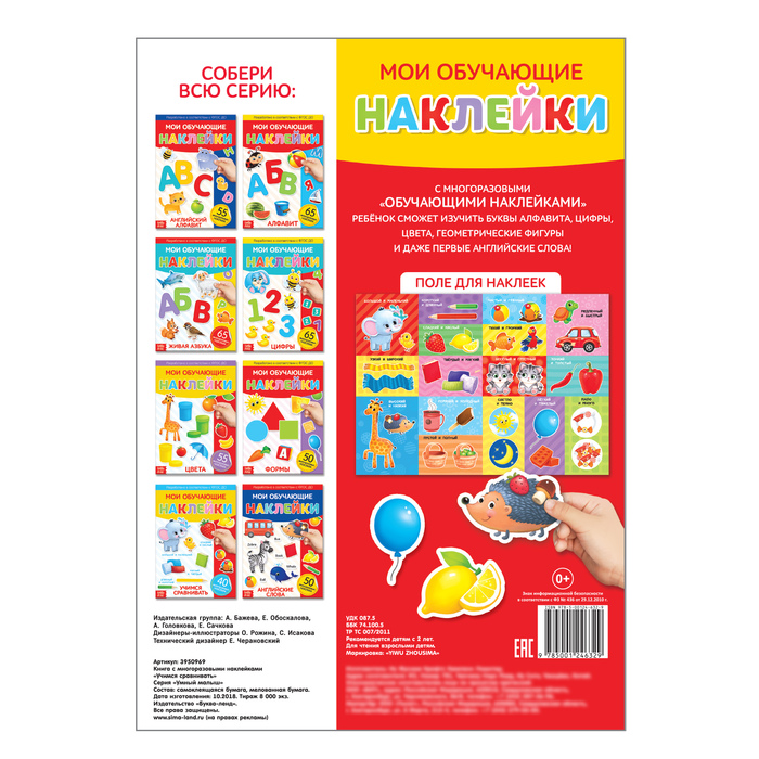 Серия «Мои обучающие наклейки» представлена 8 книгами различной тематики: