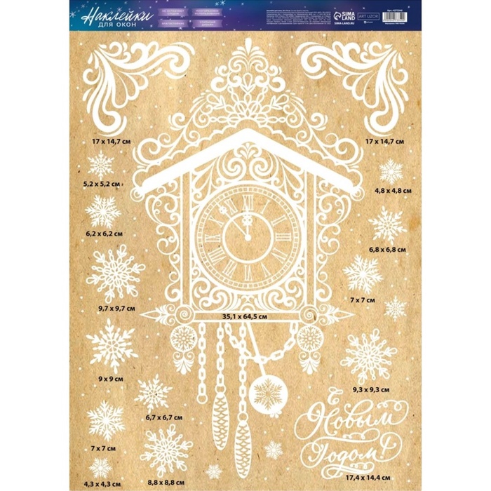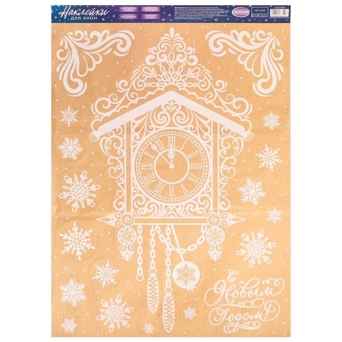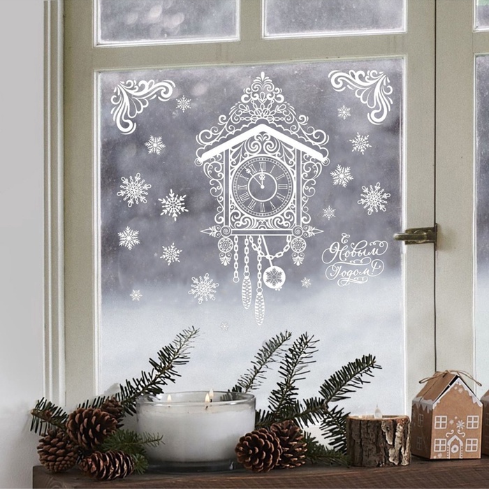 Наклейки на окна многоразовые «Новогодние часы», 50×70 см