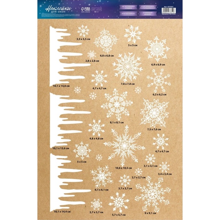Наклейки на окна многоразовые «Новогодние снежинки», 33×50 см