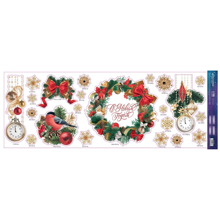 Наклейки на окна многоразовые «Новогодний венок», 70×25 см