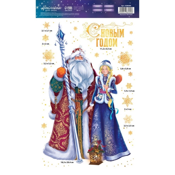 Наклейки на окна многоразовые «С Новым годом», Дед Мороз и Снегурочка 20×34 см