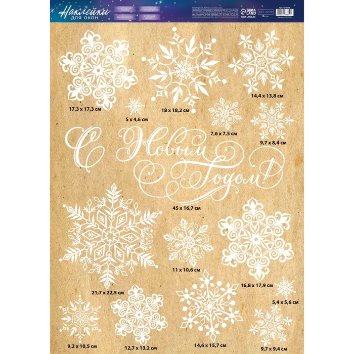Наклейки на окна новогодние многоразовые «Снежинки», 50 х 70 см