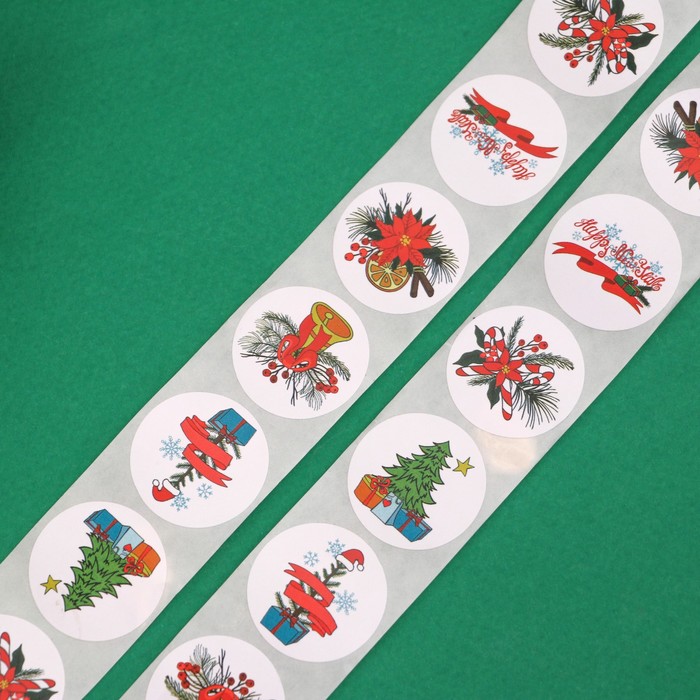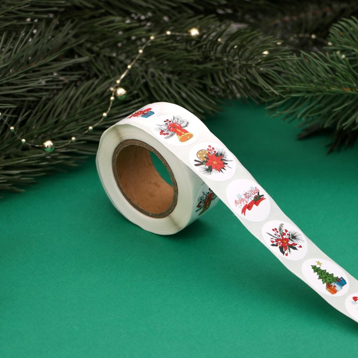 Наклейки новогодние в рулоне «Ёлочки», 500 шт., 2.5×2.5 см
