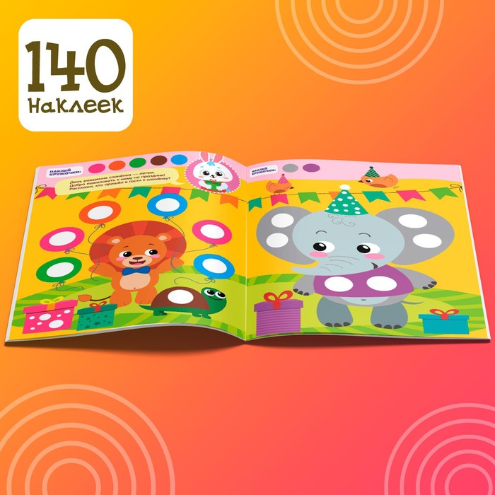 - Красочные картинки и милые персонажи подсказывают, куда именно нужно прикрепить наклейку-кружочек.