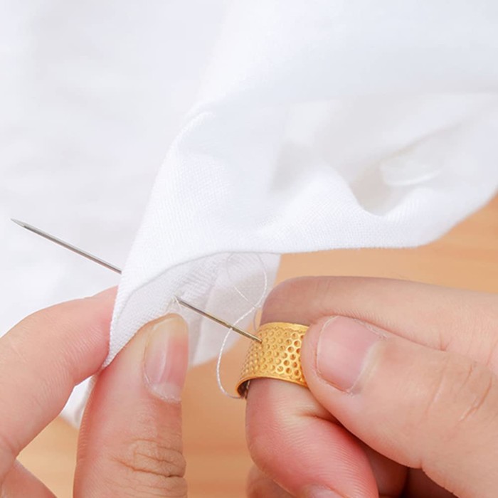 Поберегите свои пальчики! Ведь для того, чтобы проткнуть иголкой толстый слой текстиля, будет достаточно лёгкого движения. Воспользуйтесь напёрстком: подтолкните им иголку и продолжайте шить.