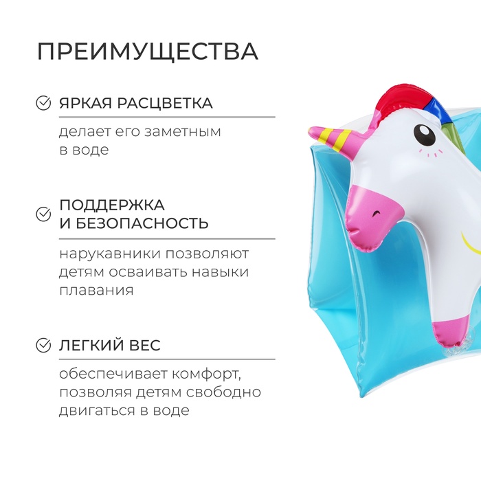Детские надувные нарукавники предназначены для обучения малышей плаванию. Изделие помогает ребёнку более уверенно держаться на воде. Яркая расцветка нарукавников делает малыша заметным во время плавания.