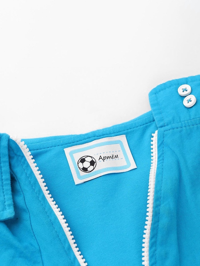 Именные нашивки с предназначены для маркировки детской одежды, рюкзаков и аксессуаров. Их яркий голубой цвет и тематический дизайн делают их привлекательным элементом для оформления детских вещей, подчеркивая индивидуальность и интерес к спорту или активному отдыху.