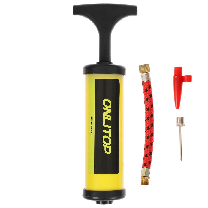 Насос для мячей ONLYTOP, 17 см, 2 насадки, шнур, цвета МИКС