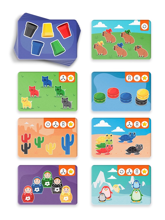 Эта увлекательная игра проверит вашу реакцию, внимательность и способность быстро принимать решения. С помощью карточек с заданиями, разноцветных колпачков и сигнального звонка вы отправитесь в увлекательное соревнование за звание самого быстрого и внимательного игрока!