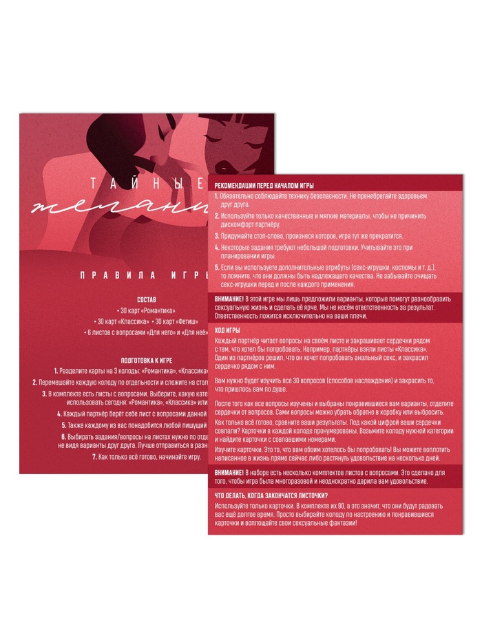 - 90 карт («Романтика», «Классика», «Фетиш»)