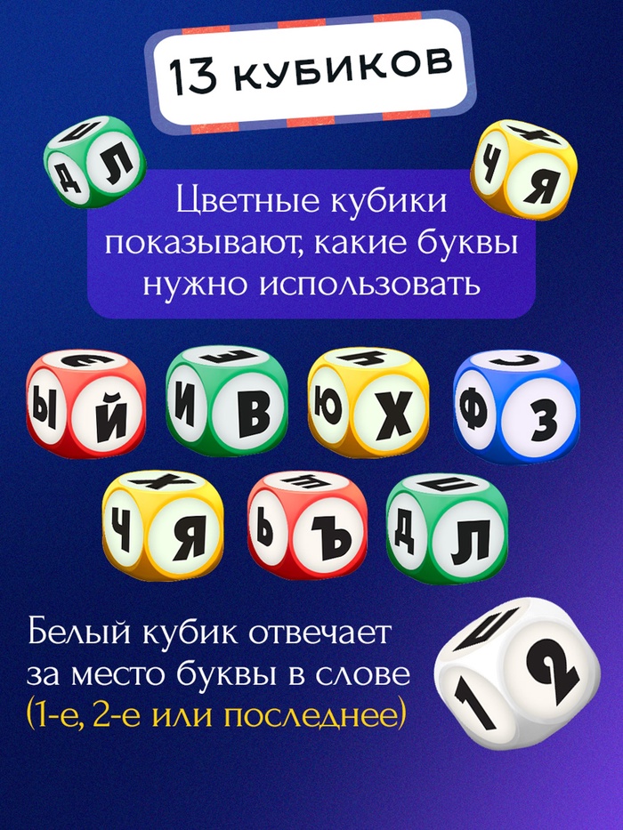 - При этом в словах на определённом месте должна стоять одна из выпавших на кубиках букв.