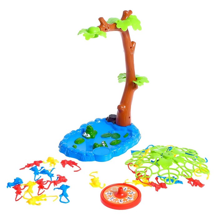 - Закрепите крону дерева на стволе и раздайте обезьянок одного цвета каждому игроку.