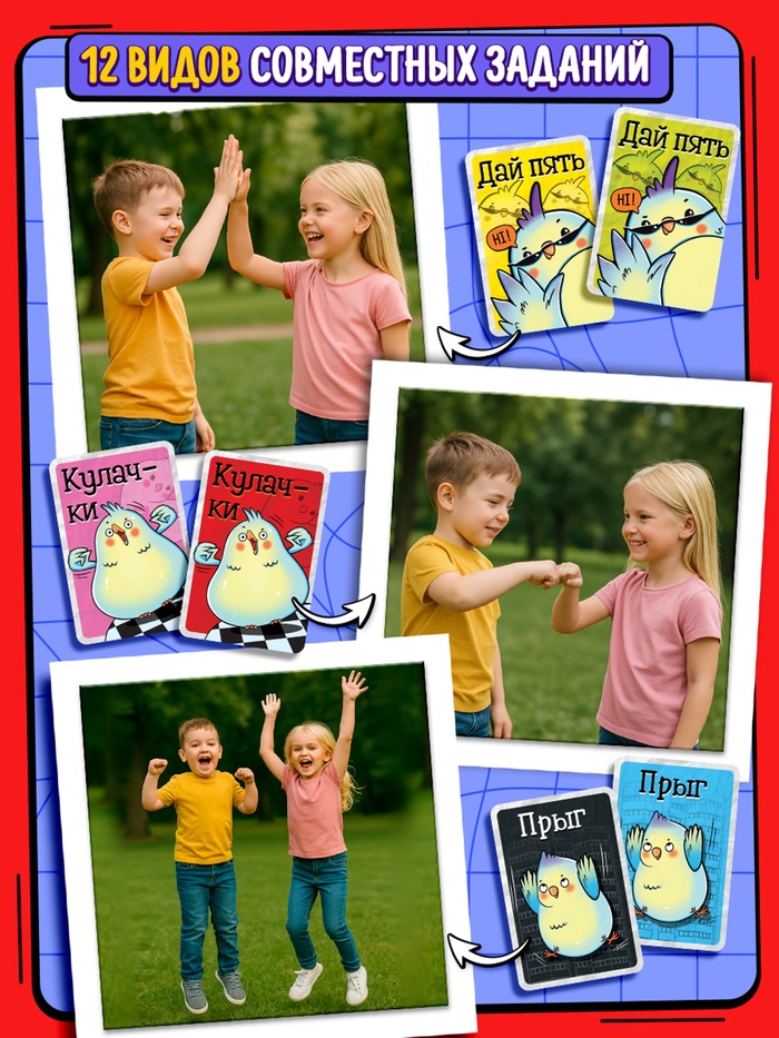 - Игроки, у которых карты совпали, выполняют совместные задания