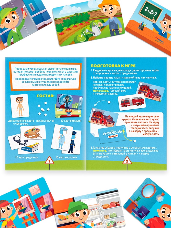 Цель игры: Познакомить ребенка с различными профессиями, их особенностями и важными качествами, необходимыми для успешной работы.