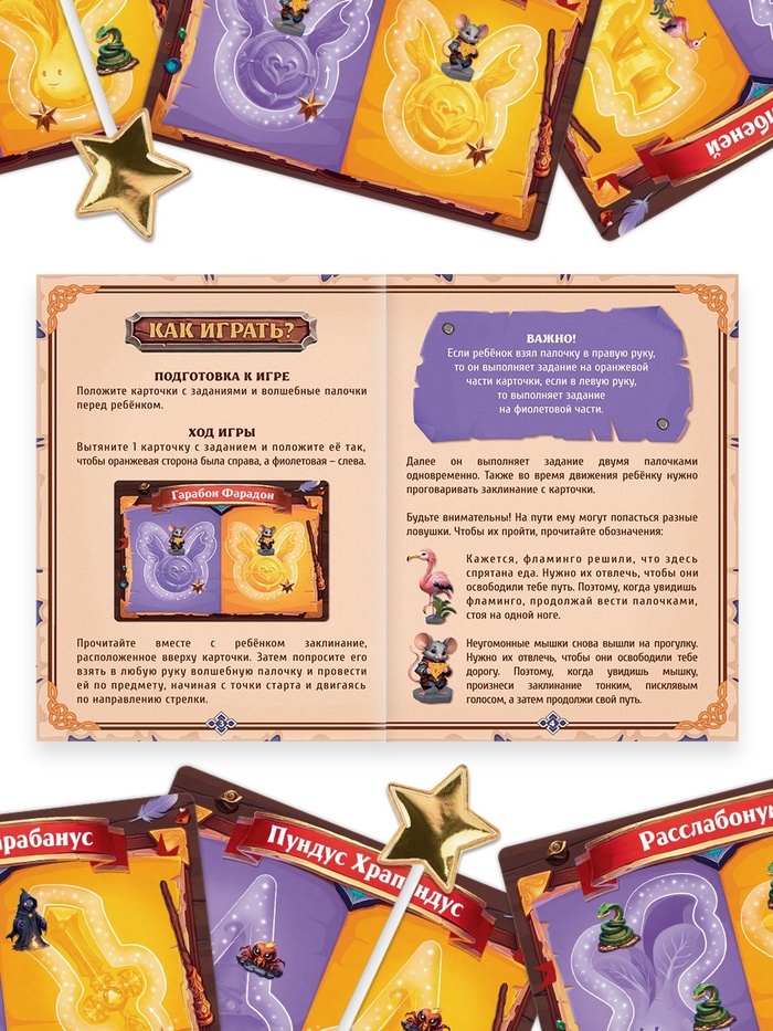 - Вытяните 1 карточку с заданием и прочитайте заклинание вместе с ребёнком