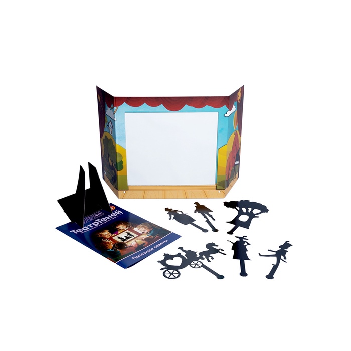 Настольная игра «ТеатрТеней» — увлекательная игра света и тени, с помощью которой ребёнок может разыграть любимые сказки и почувствовать себя настоящим рассказчиком. В набор уже включены знакомые сюжеты: «Колобок», «Курочка Ряба», «Три поросёнка», «Репка», а также возможность придумать собственную сказку.