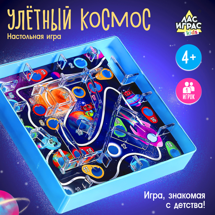 Настольная игра «Улётный космос» рекомендована для детей от 4 лет. Рассчитана на 1 игрока.
