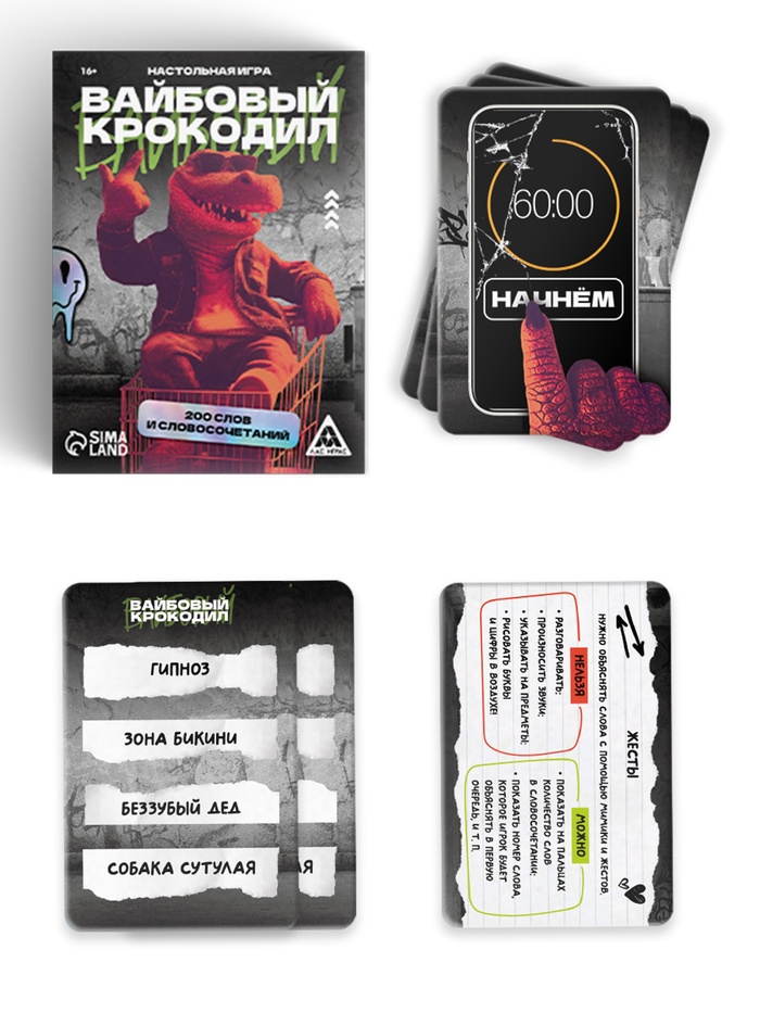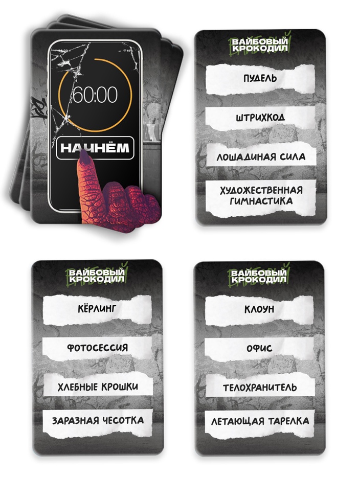 Вас ждут целых 200 слов и словосочетаний в кайфовой настольной игре «Вайбовый Крокодил»!