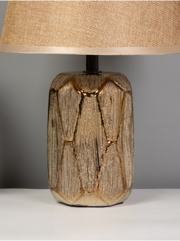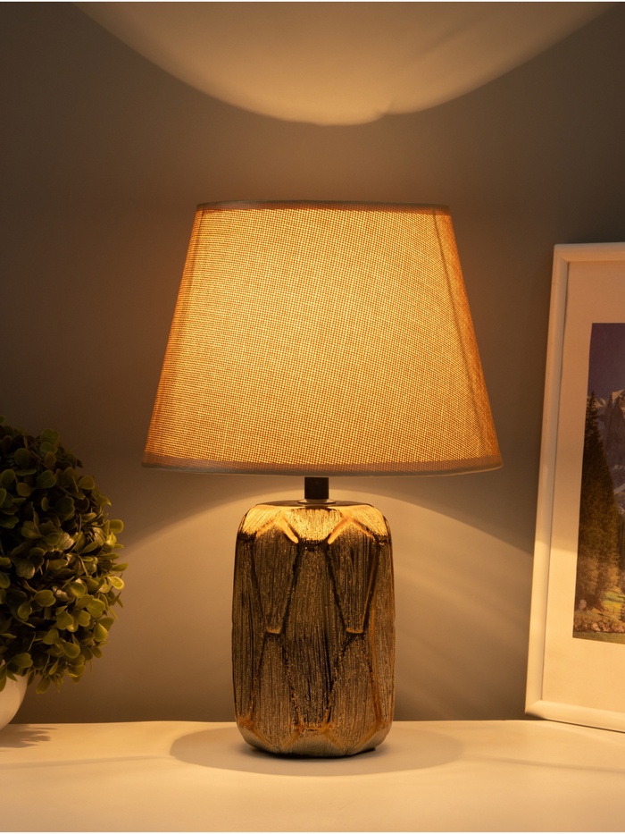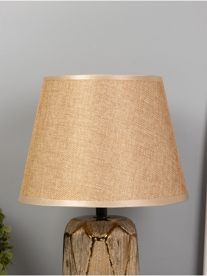 - Золотистый абажур добавляет нотку роскоши и создает мягкое рассеянное освещение, подходящее для чтения или отдыха.